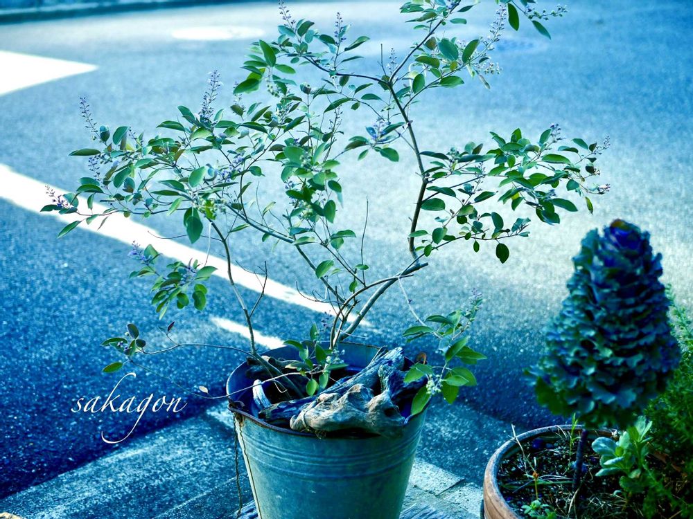 ミツバハマゴウ は実家から持ってきた穴あきバケツに入れて、根元に流木を被せてます。🪣(昨年は日陰に置いたけど、そうすると花が咲かないんですよねー)