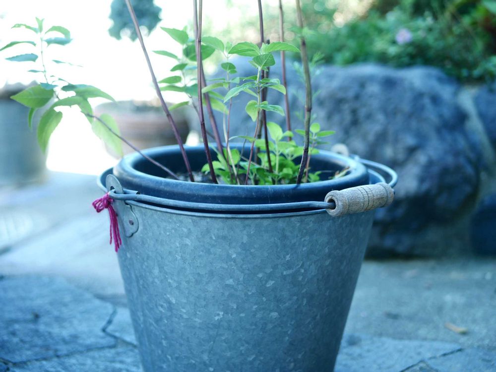 先日ガラクタ屋さんに行って、古いトタンのバケツ(オール500円!)をいくつか買いました。