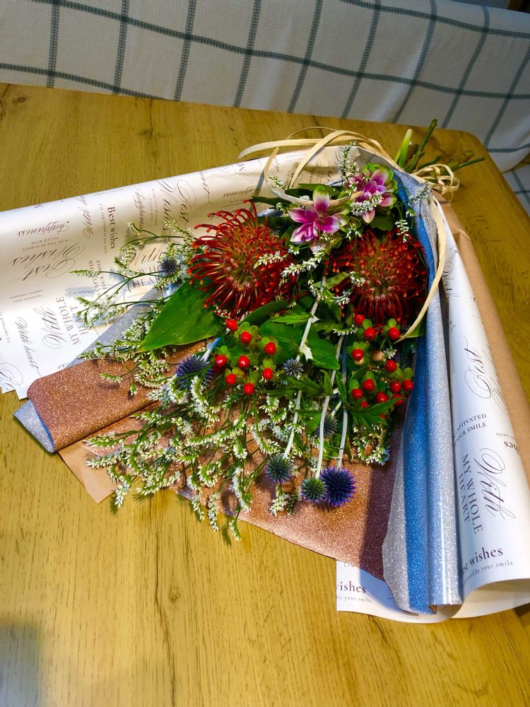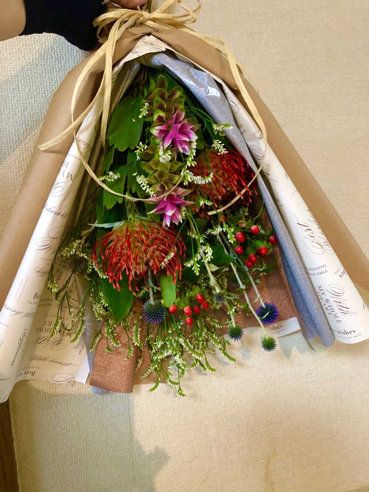 暑いので長持ちする花で花束💐スワッグにもできる花で作ってみました🥰