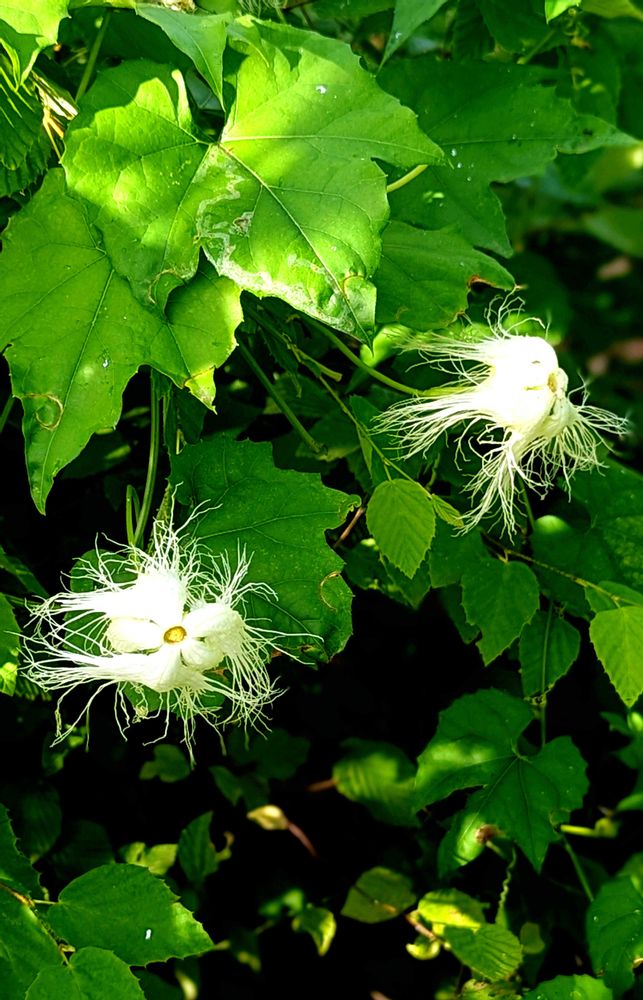 カラスウリの花は、夏の夕暮れ時に開き、翌朝には萎んでしまう一日花です。白いレースのような繊細な花びらが特徴で、夜行性の蛾を誘引して受粉を助けてもらうために夜に咲きます。