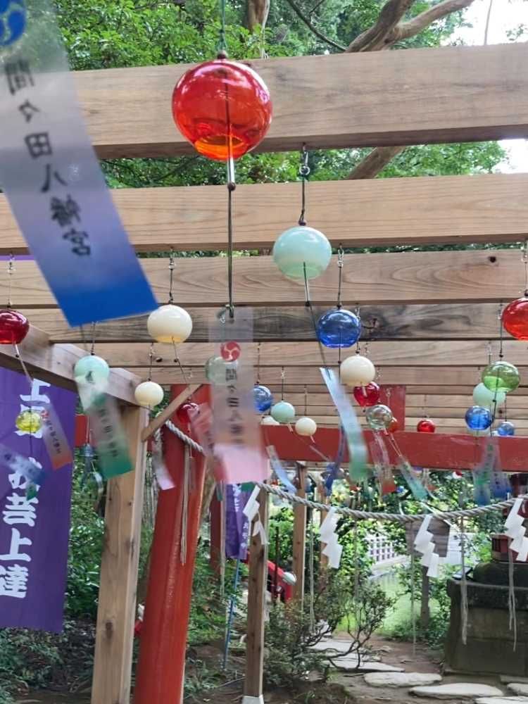 神社の中は、外より涼しく、風が抜けると風鈴が鳴って、しばしの涼を感じられます⛩️
