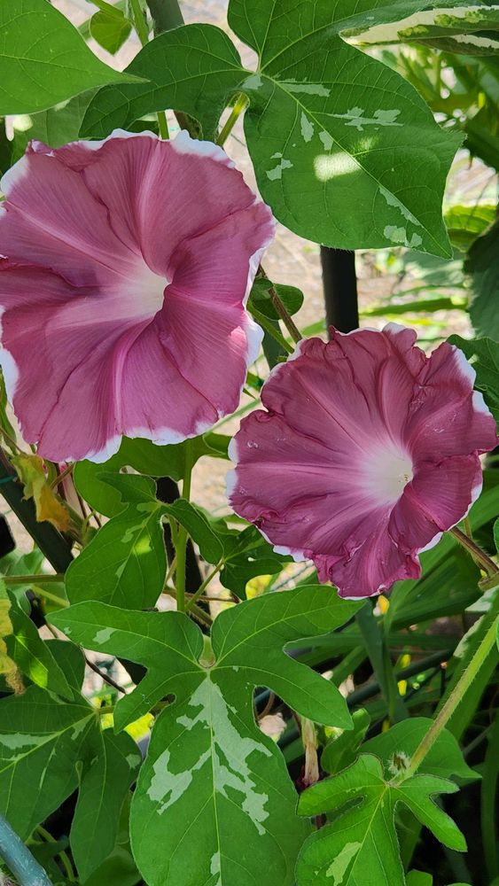 初めてのカラーの朝顔が咲きました😆💕✨🌿