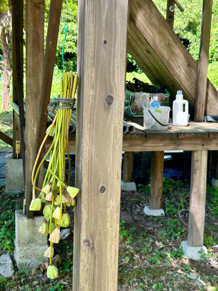🤗蓮の花托(咲き終わった後の花殻)をツリーデッキに下げています。