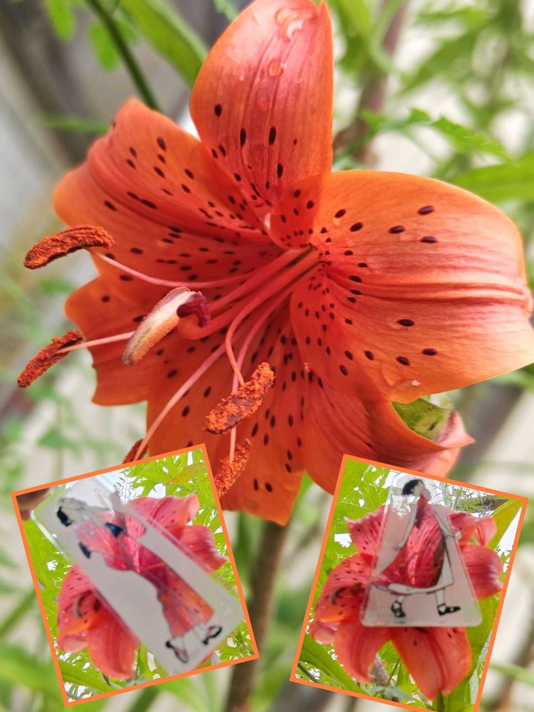モコさんのオニユリとお散歩ちゃんに憧れて、お散歩ちゃんまとわせたけど、ちょいボケ😞💦
