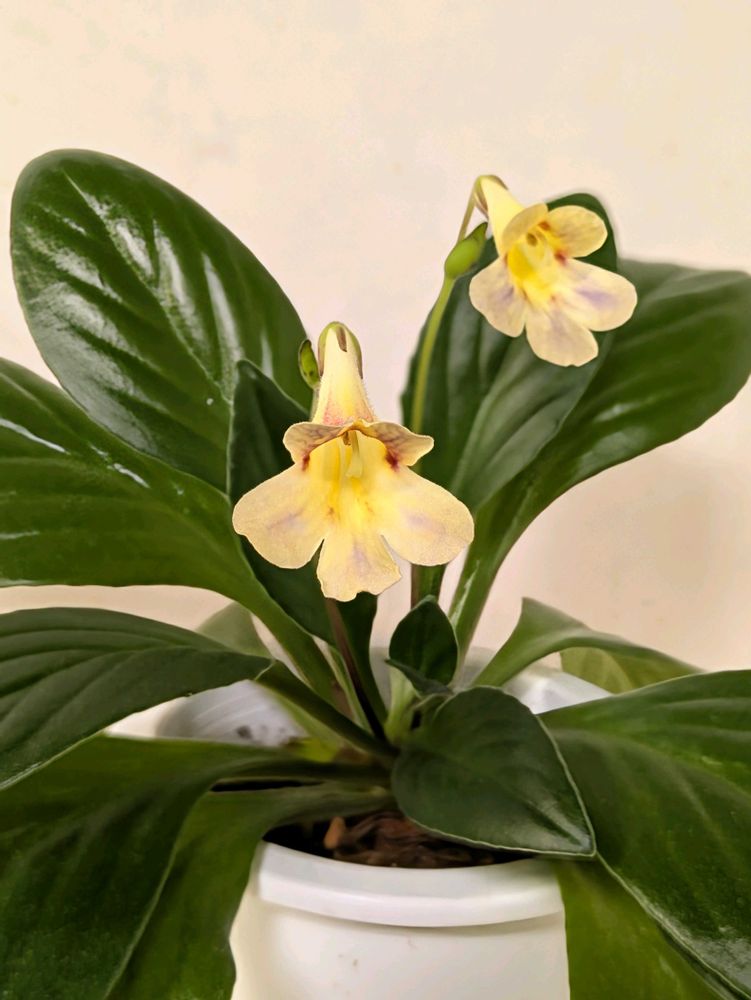 葉っぱもツヤツヤして元気そうだし、花色もクリーム色っぽいけどかすかに模様のようなものが見えます
