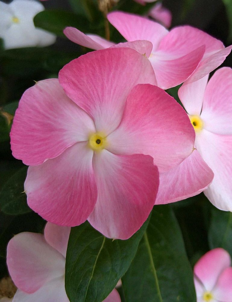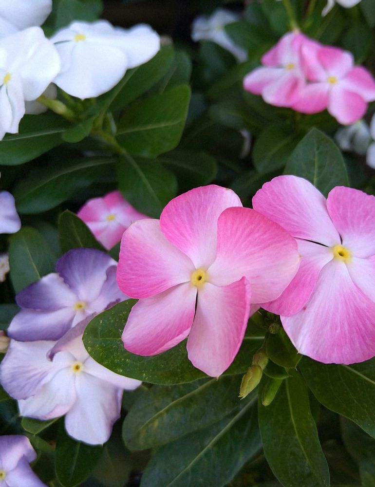 ② 今年のニチニチソウは、爽夏と桃のときめきに出会い、真っ白なものと3色植えにしてみました✨🩷🩵🤍✨