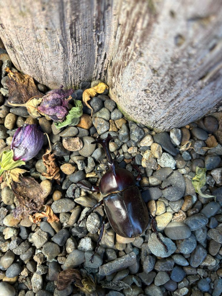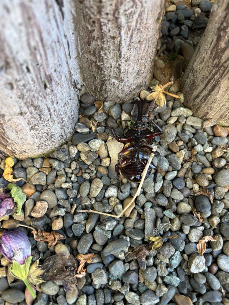 ②③今日はカブトムシがひっくり返っていたのは起こしましたが、暫くして見に行くと昨日と同様2つに分かれて🐜アリが群がっていました😱どうやら暑さで弱っていたようです。
