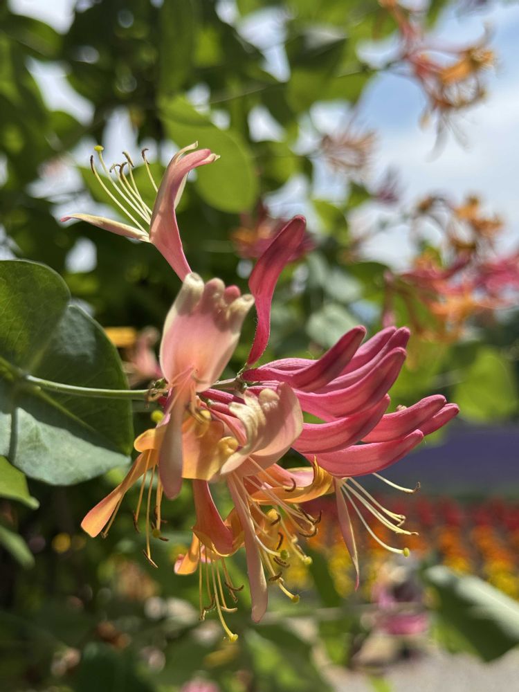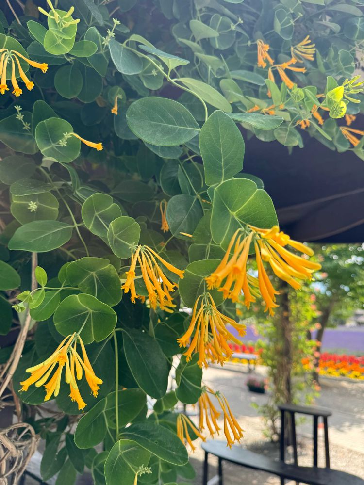 オレンジ色のハニーサックルが綺麗✨ですね。初めて見ました。お花がブーケのようでかわいい💠ですね。