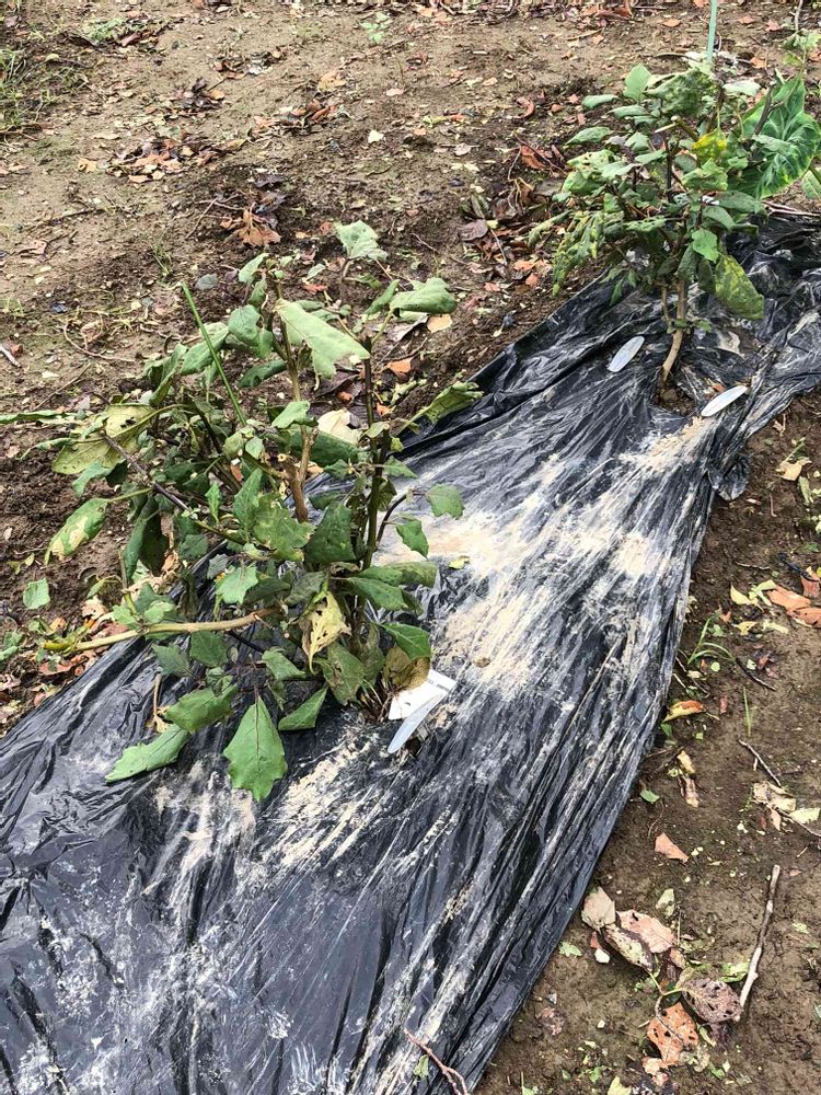 少し前ですが、ナスを切り戻しました。秋ナス期待!ですが、なんか少し元気がない…追肥はしてあるんだけどなぁ〜