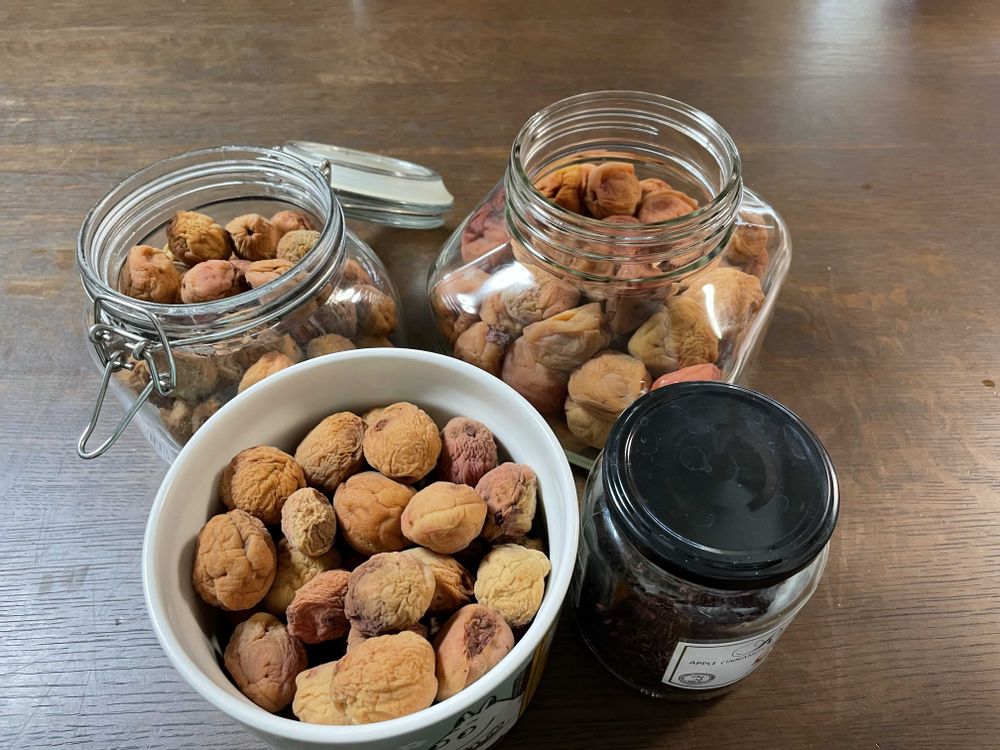無農薬の丸々ポタッとした極上梅干し取り寄せてお日様に干してたわ