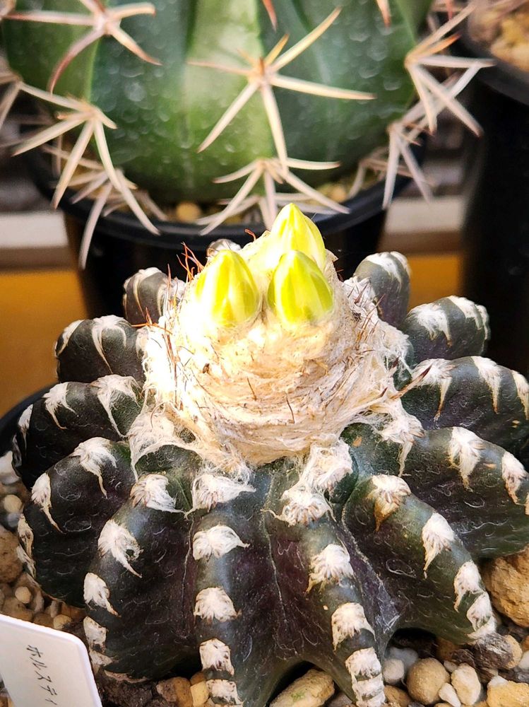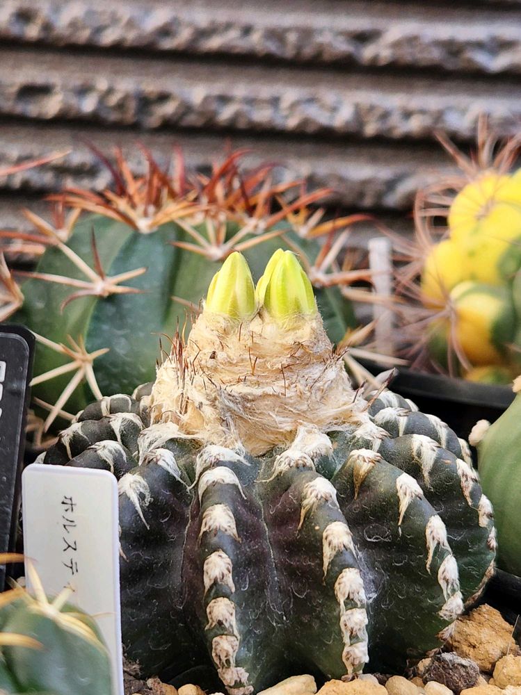 夕方になり🌵棚の遮光シートをめくると、ホルスティさんから2回目の角が(*≧∀≦*)✨