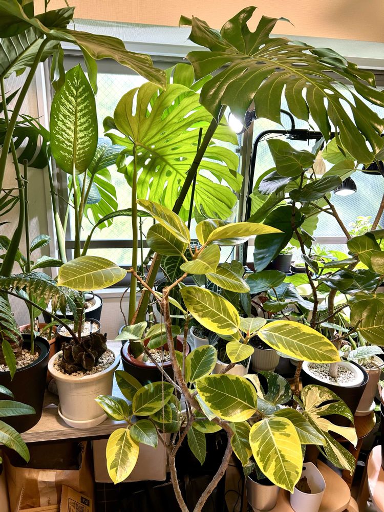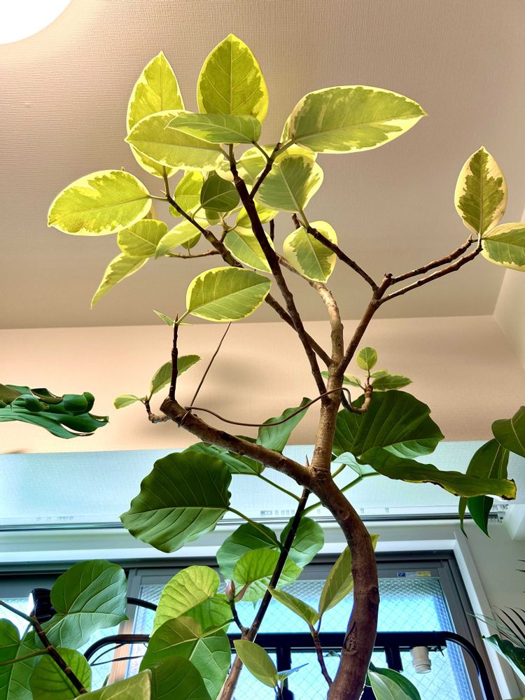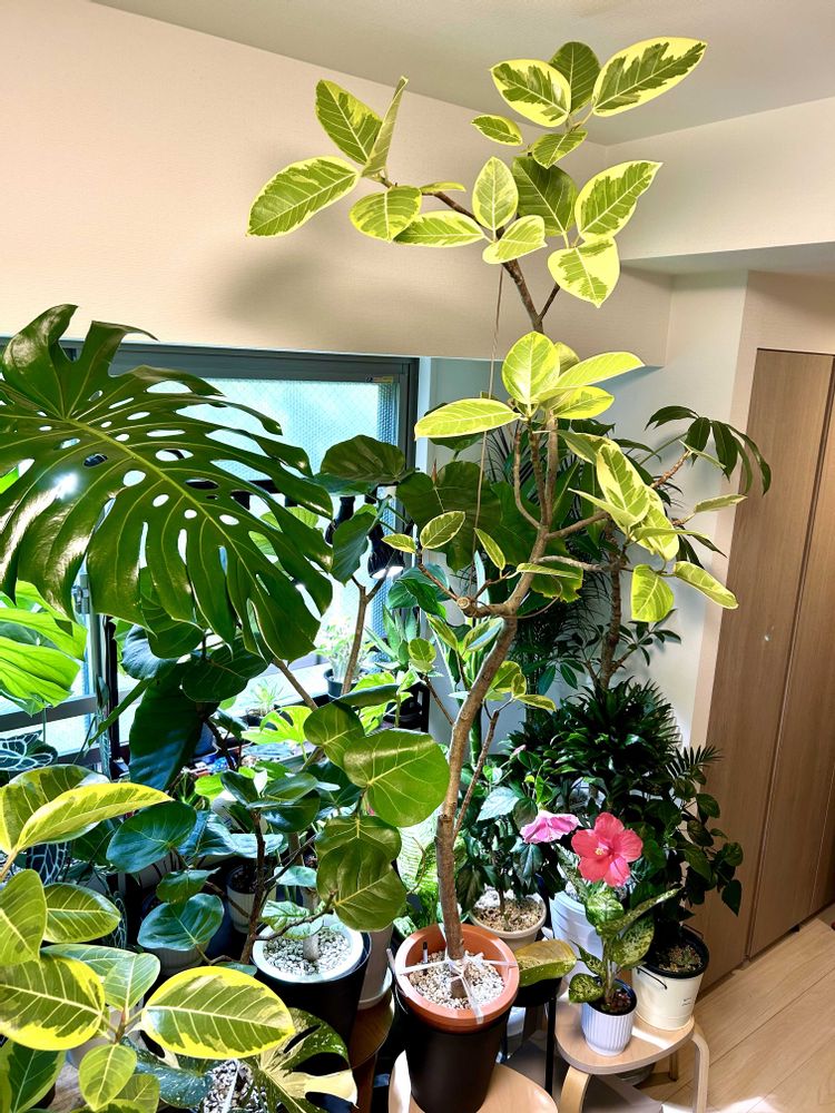 ベランダのゴムの木チームを室内に取り込んで鑑賞した😊ジャングル感マシマシ😊