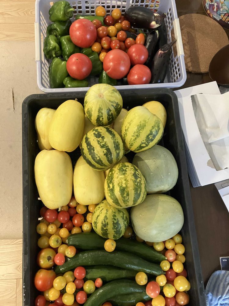 いろいろ収穫です。マクワウリおいしいです。取り出した種をまいて増殖させてみようかな