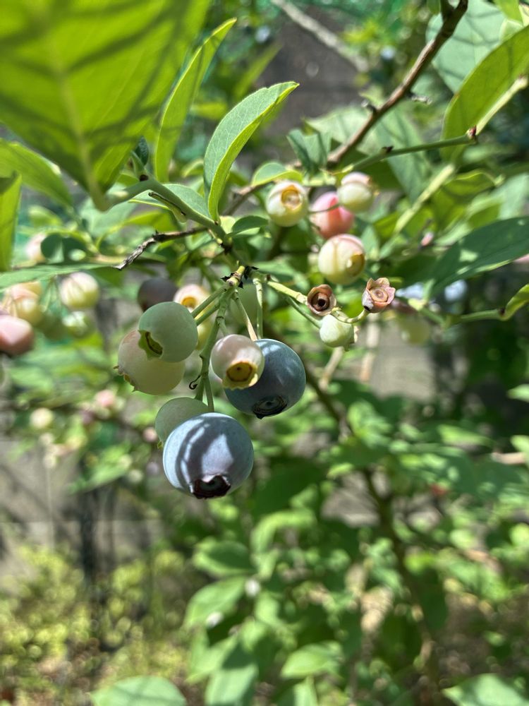 ④ブルーベリー🫐順番に色付いてます。食べ頃になると一気に大きくなる😋