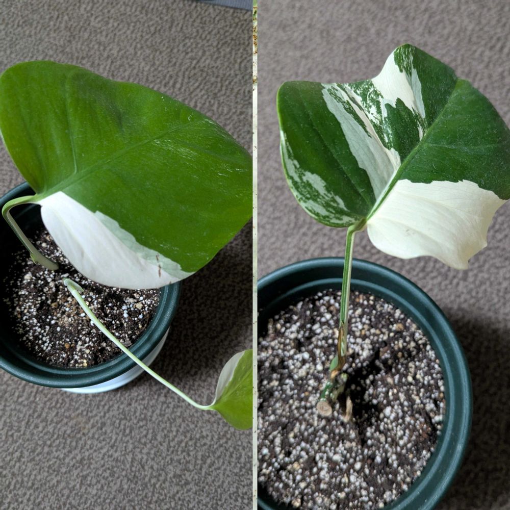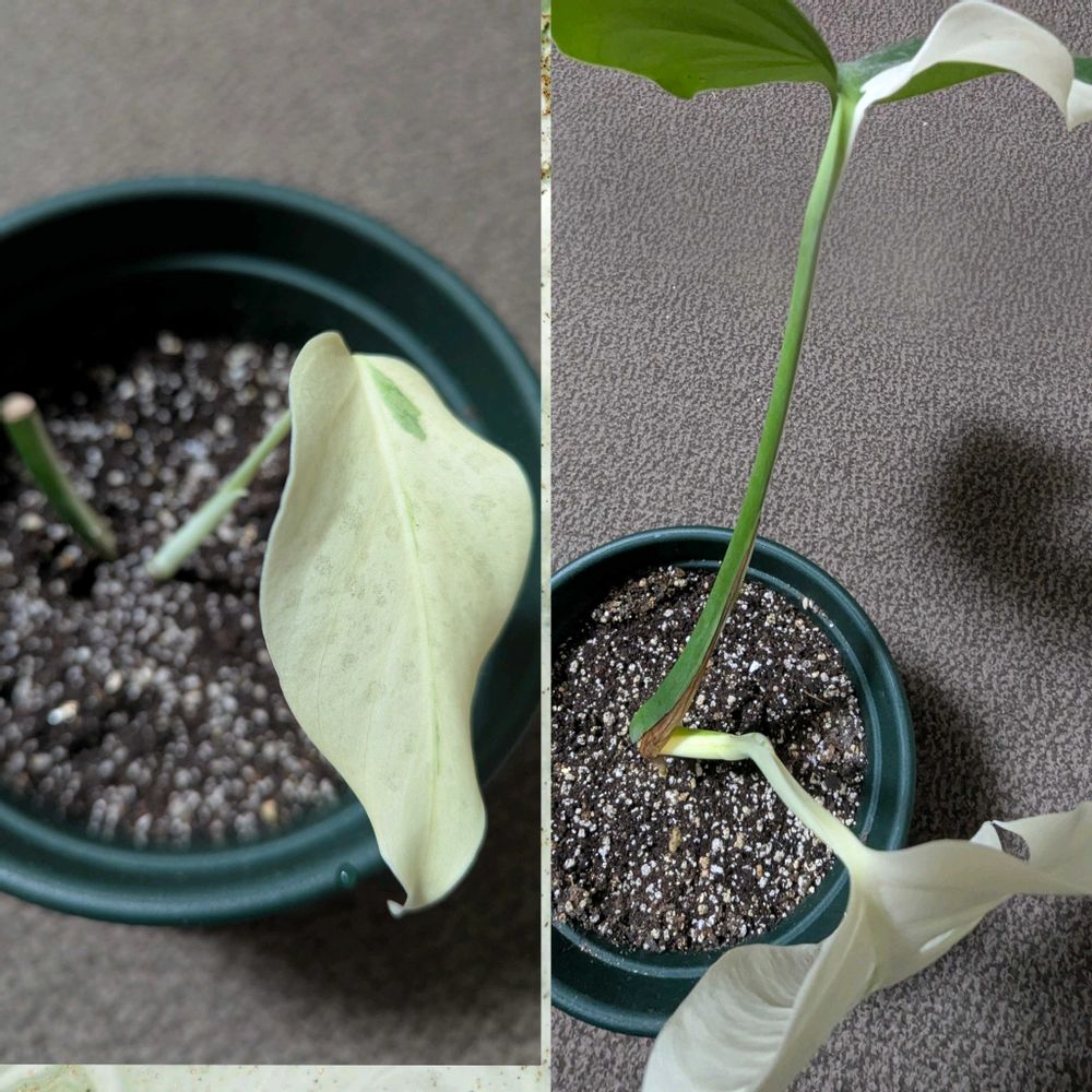いつか綺麗な斑入りで切れ目のある大きな葉が出てくれるのを楽しみに育てています💕💚🤍