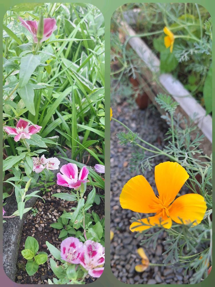 春に種蒔きしたゴデチャと花菱草