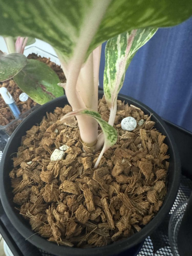 アグラオネマ・レッドアーミーの葉っぱが無事開いて、すぐ新葉の気配が出て来ました◎