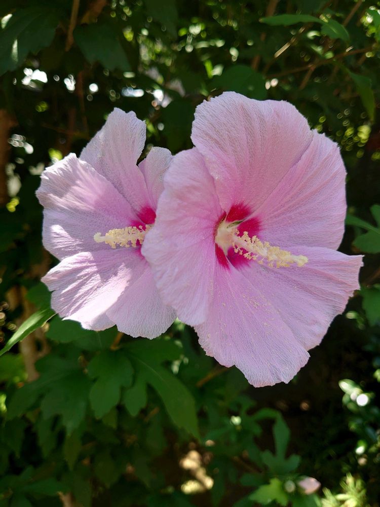 今日は久々の夜勤明けの帰り道で🩷ムクゲが🩷🩷2つ並んで可愛く咲いているのを見つけて👀嬉しくなりました😊💕