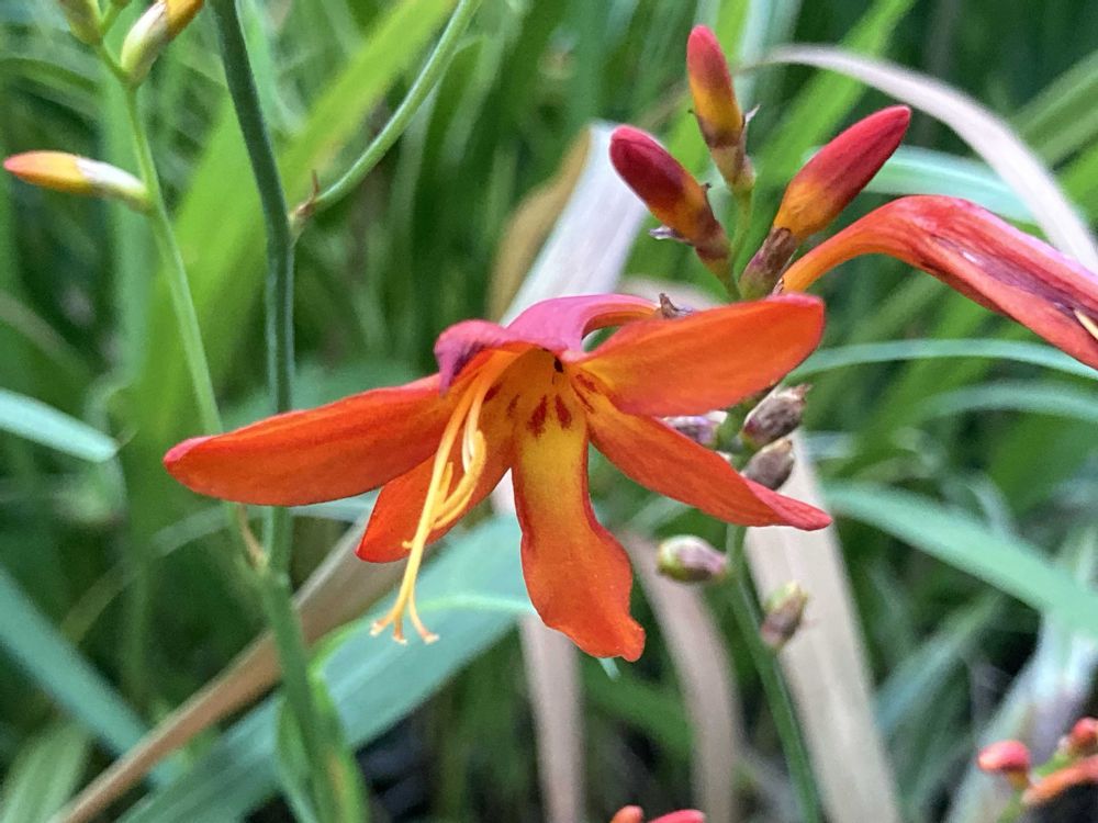 アヤメ科ヒオウギズイセン(クロコスミア)属のお花。