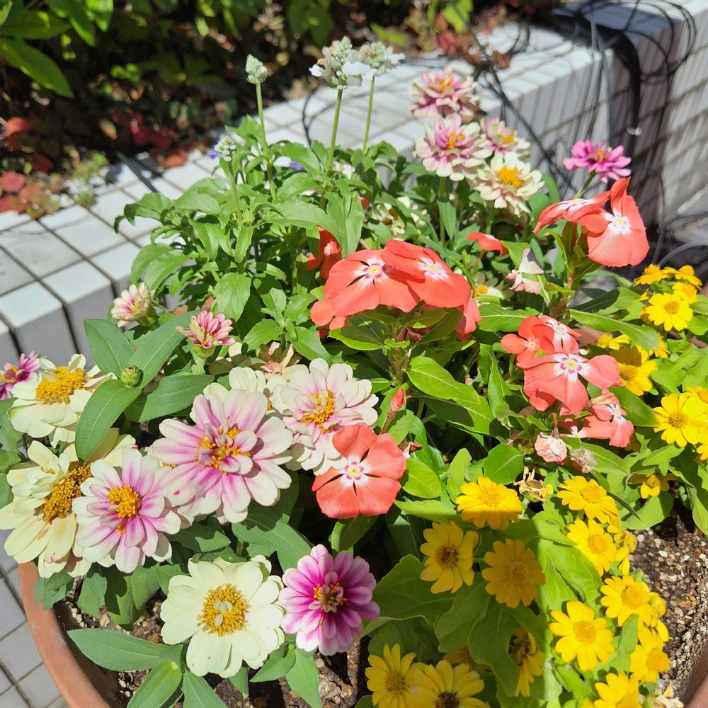 オレンジ🧡🧡二チニチソウも可愛い♥️♡ですねー(*˙︶˙*)ノ"💕💕。:°ஐ..♡*