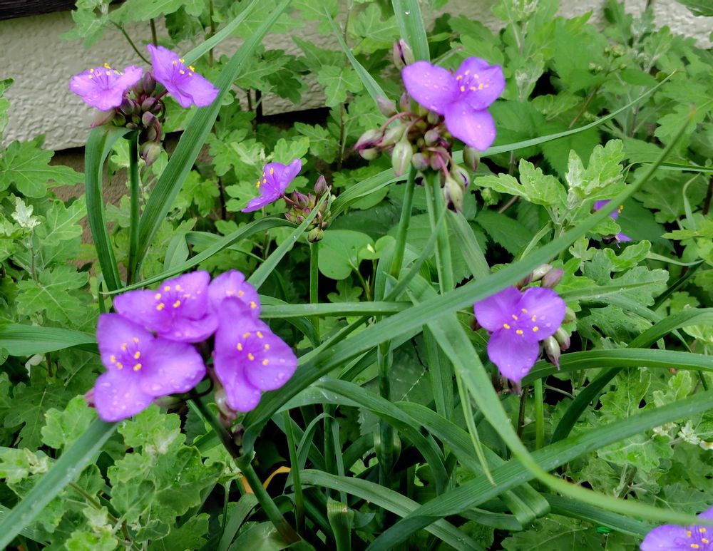 庭のムラサキツユクサ、毎年狭い庭で菊と押し合いながら咲いています!