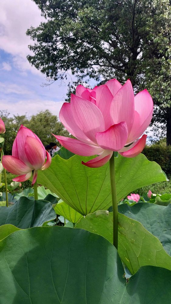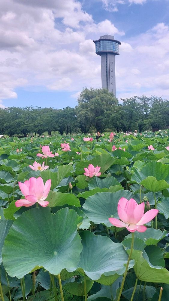 蓮の花が美しいです。水面から茎をすっと出して咲くハスが大好きです。
