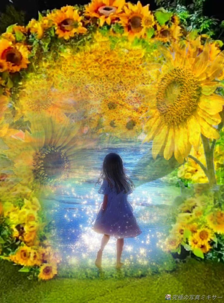 ひまわりの中の少女可愛いぃー(〃ꯁࠔꯁ〃🫰🏻)👒🌻