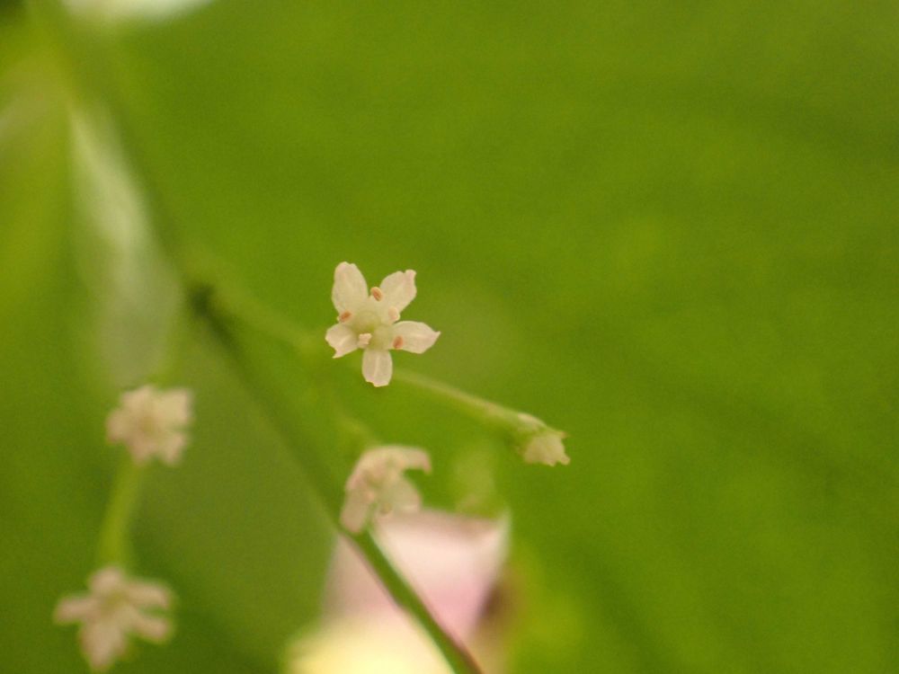 萼が、細長くて、緑色の台座の上に花がちょこんと、乗っている感じ。
