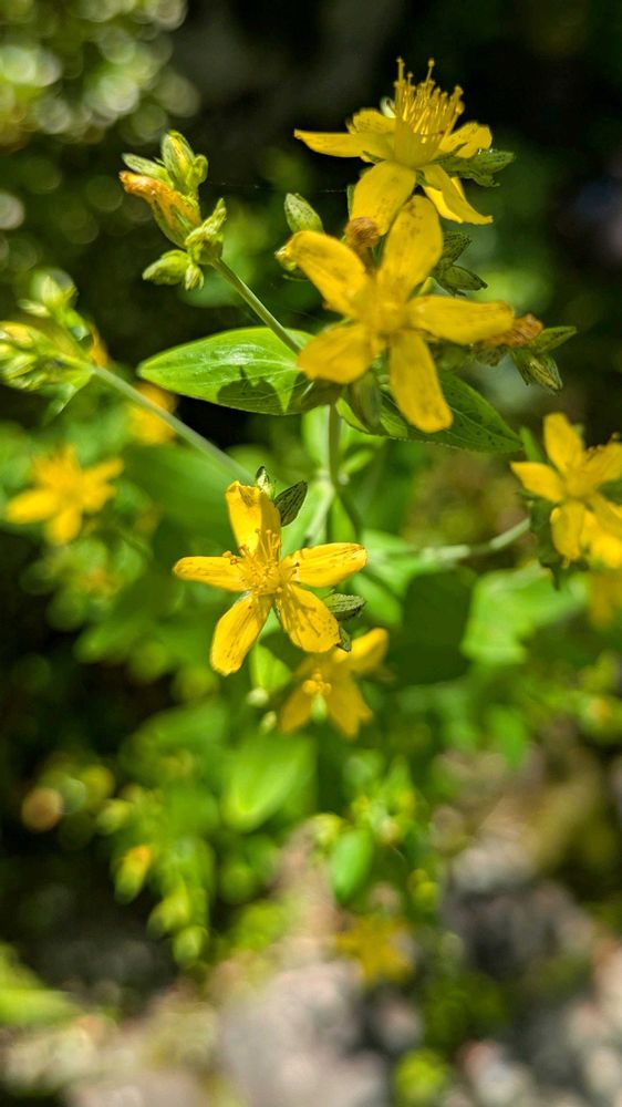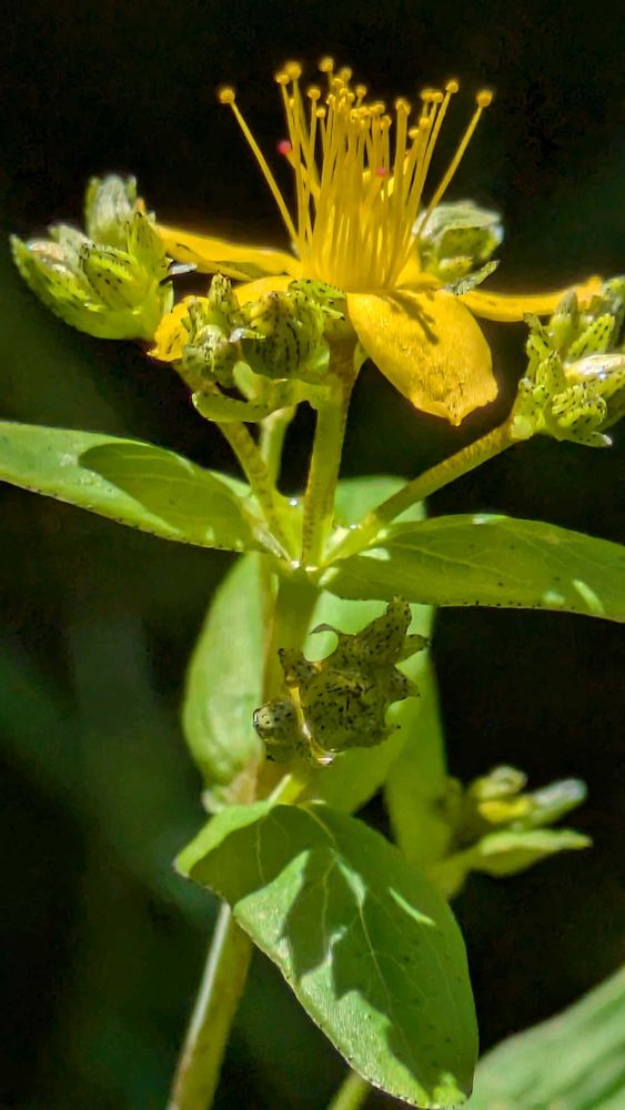 先日の大雨のあとに一気に咲いてきた ヒペリカムご一族🏷 草本部門の本家本元だ🟡 花弁も萼片も葉も黒点が目立つ⚫