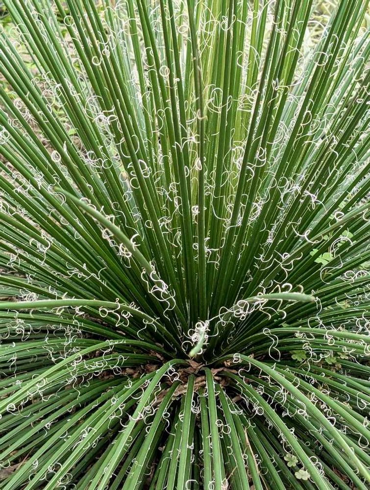 放射状に展開した強そうな細い葉に、何やら白くクルクルッとしたのがついてる