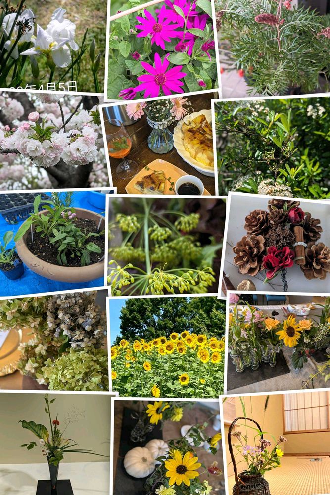 Googleフォトが「自然のブーケ💐2024年」と題してコラージュしてくれました🍀😊✨近所の桜並木🌸お友達の🏠ガーベラ🩷ヒマワリ🌻お料理教室㊦㊥愛知牧場🐮🐑松坂屋名古屋店で池坊展㊦㊧トロッケンクランツの講座❦リース.•*¨*•.¸¸♬長崎の実家🛩鶴舞公園🏞ハーブの寄せ植え🌿豊田市美術館㊦㊨🌸豊明花き市場を見学~♬♬Good memory☆(*˘︶˘*).。.:*♡