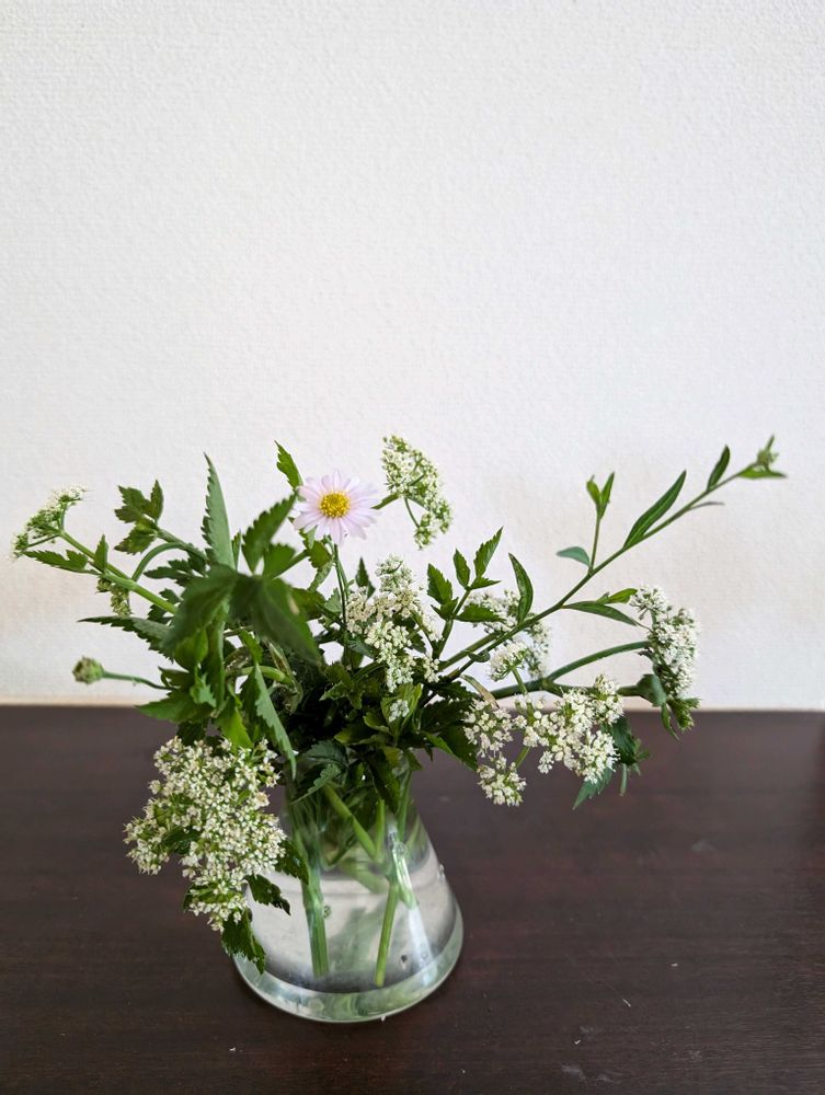 ①ムラサキツユクサ②トラディスカンチア(ツユクサ科)③コクリュウの花④アゼムシロ⑤セリの花遊び