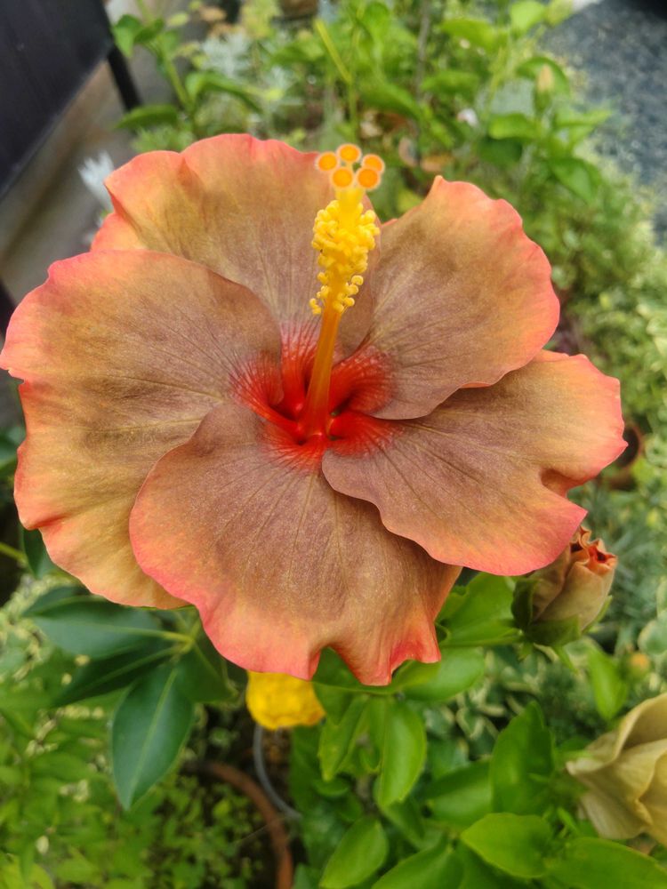 セメントの隙間から大きくなった原種のハイビスカス ロバツスも広がってきましたよ