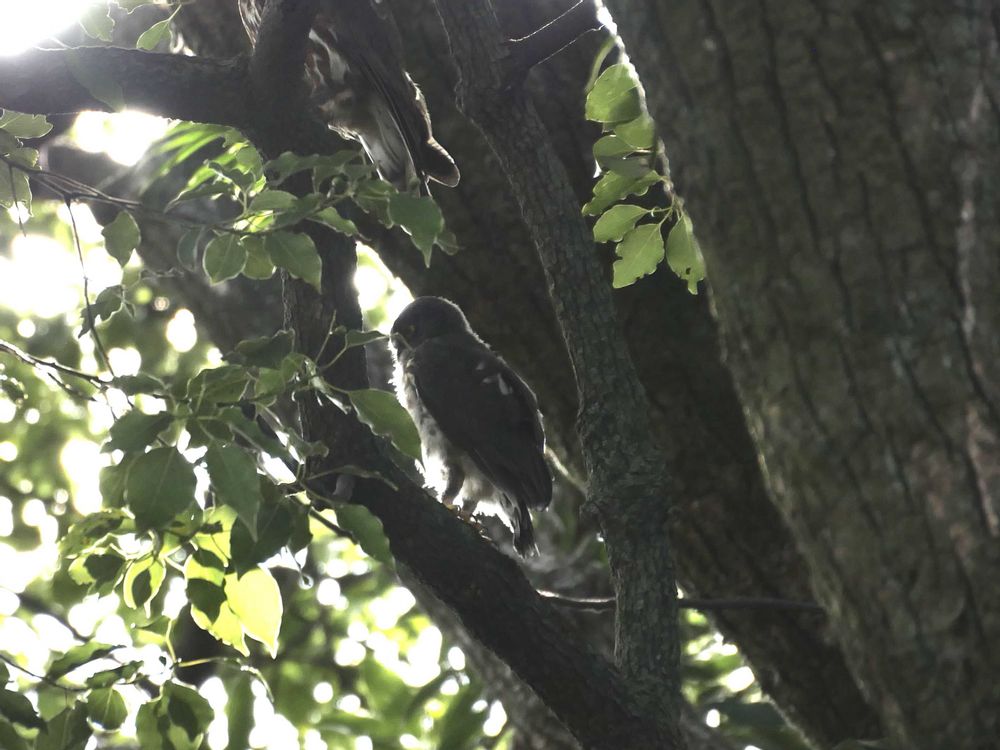 前日投稿したアオバズクの雛が巣から出てきました🎶今年は3羽産まれたようです。まだ親鳥がついて、巣立ちの練習中のようです。