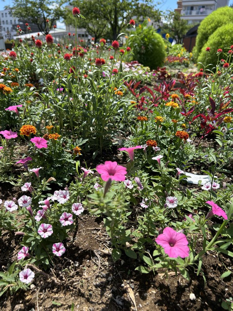 都会のど真ん中で暑い中頑張ってる花達が健気ネ