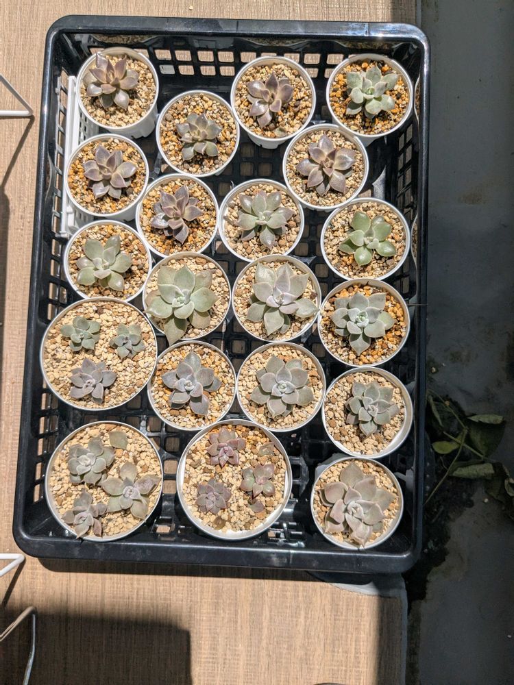 2024.07.01 突如多肉植物に興味を持ちました。 2025.07.01 無事(?)2年生に進級。 スペースもないのに実生に手を出し、芽が出た、本葉が出たと一喜一憂しています。綺麗系を綺麗に育てるのが目標です🤣
