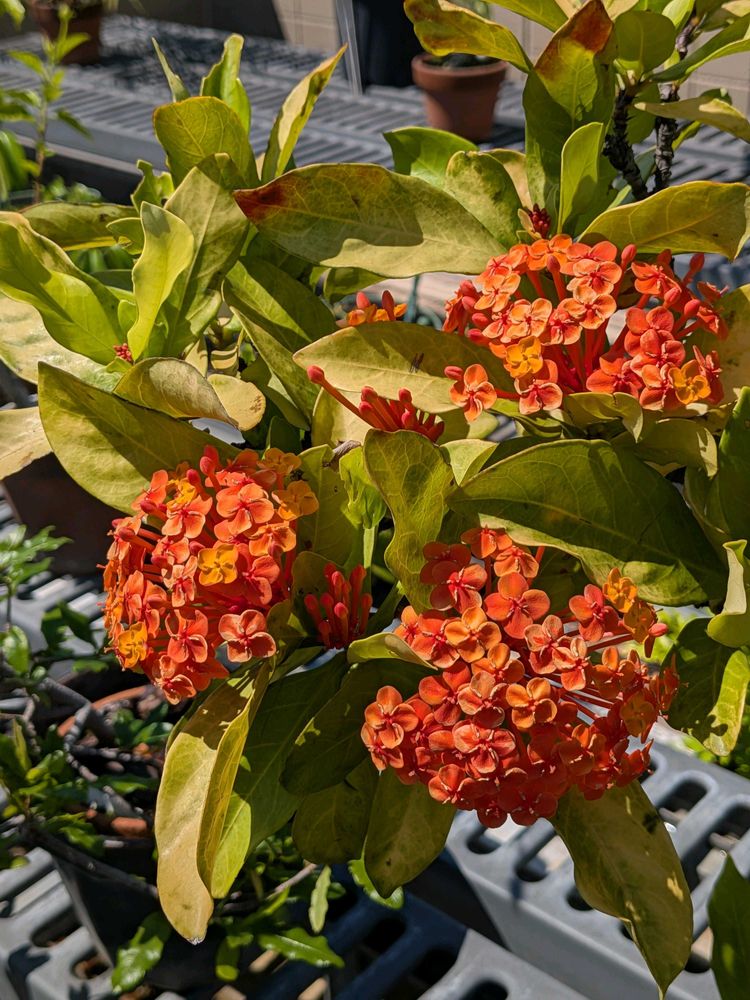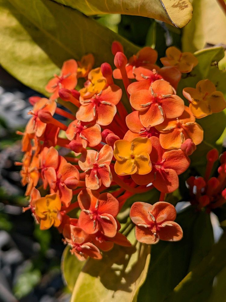 現在の琉球三大名花の一つサンダンカですが原種とは異なり色が混ざっていますね。本来のサンダンカは純粋なオレンジ色で花の形も違うのですが戦後に品種改良された物がたくさん出回りなぜかこちらが現在の琉球三大名花になってしまっているようで原種は沖縄本島の一部の民家を除きほとんど残っていないそうです。漢字は三段花や山丹花と書き名前の由来は年に3回咲く事からまた花が3段になり咲く様子からだそうです。しかし他にも諸説が多数あり定かではありません。