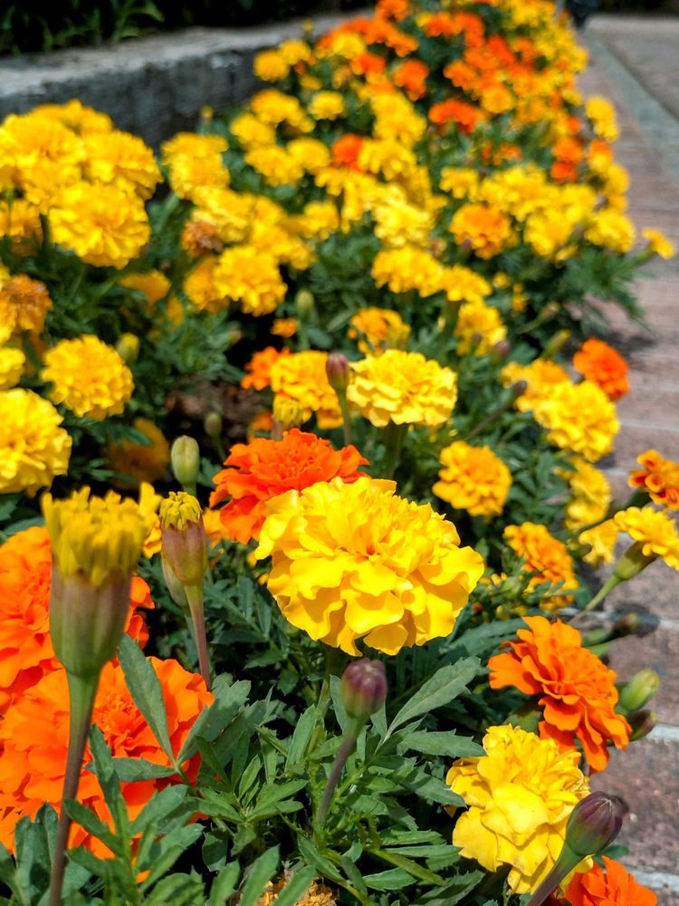 暑さの中、マリーゴールドが