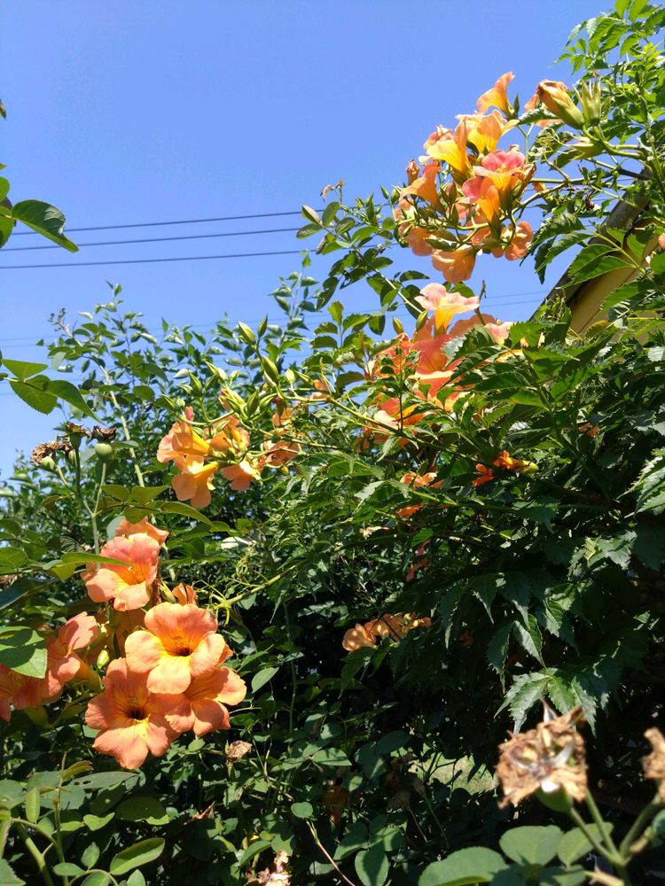 ②ノウゼンカズラが青空に鮮やかで、これって本当に夏の花って感じ☀️🍉🌻