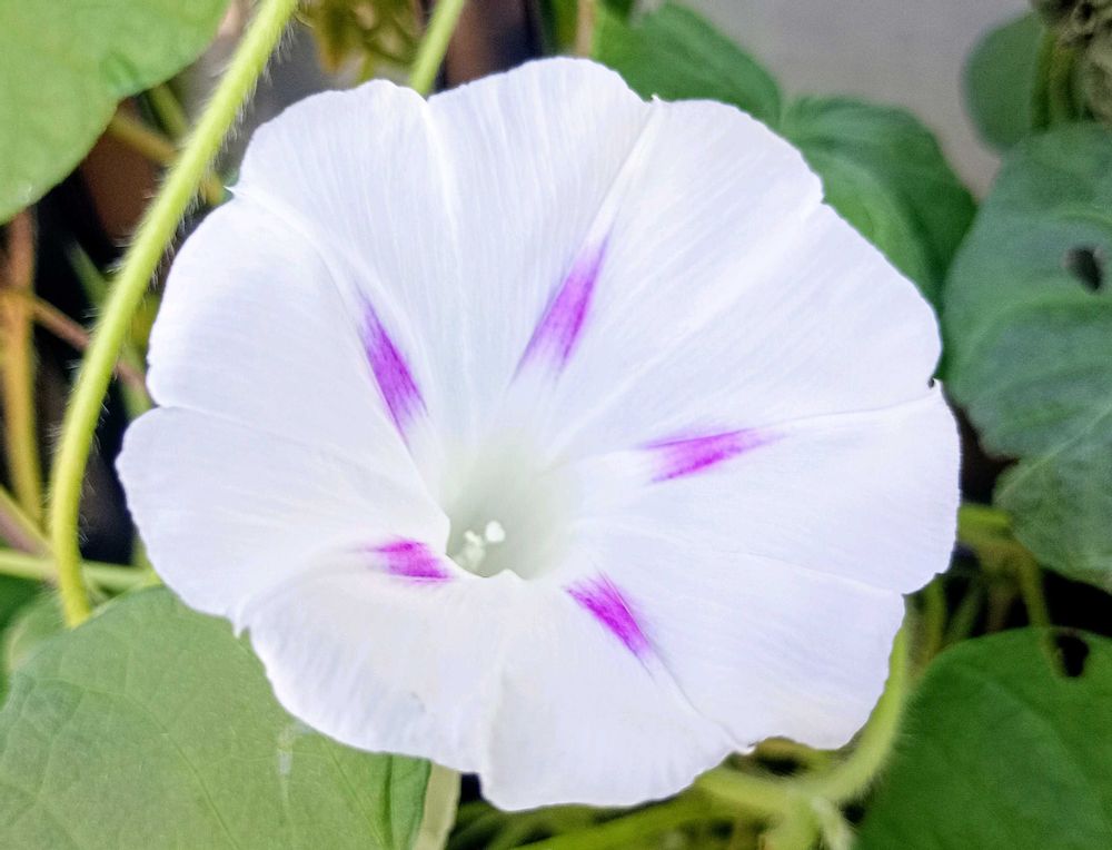 ✤グリーンカーテンの朝顔 サカタのタネ 🏷️実咲シリーズ「西洋系、星の混合」=ミルキーウェイでいいのかな(?)丸葉、小ぶりな花💮です