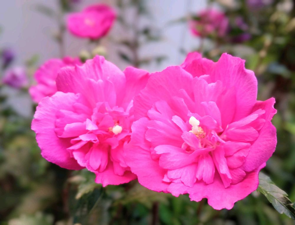 ✤我が家では、古株ぐみになった八重咲きの木槿。朝イチの花は色鮮やかでした😃📱✨️
