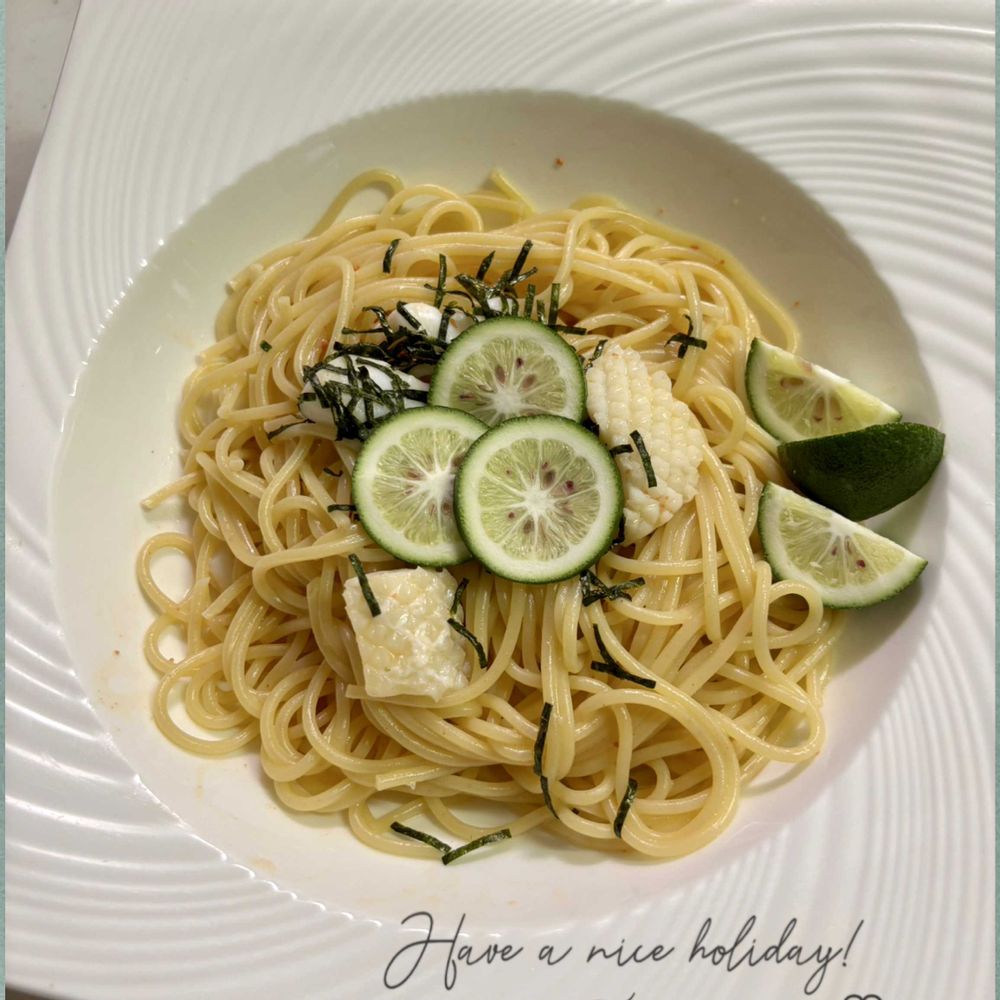 ③そうだ‼️柚子やかぼすのように薬味として使おう。お昼ごはんのパスタに🍝。