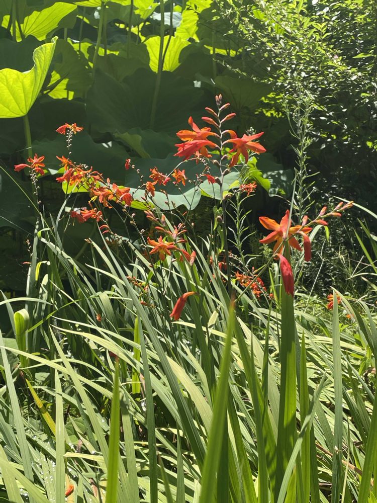 ① ヒメヒオウギズイセン🧡鮮やかなオレンジ色の花が目立ちます😉