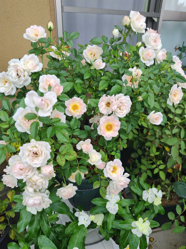 アパートの専用庭で、四季咲きバラをメインに約60鉢育てています。紫・白・桃色中心に集めて、香りが気に入ったり出先で一目惚れした植物たちです!