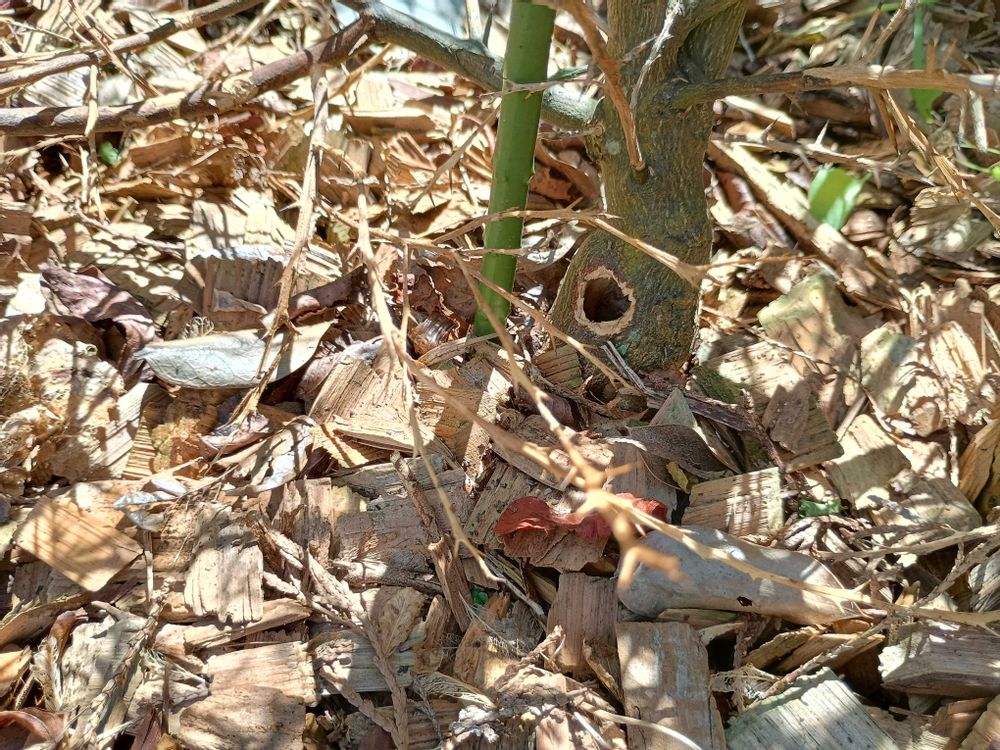 1カ月ぶりに帰省したら、フィンガーライム枯れてた。根元に大きな穴あいてるし。