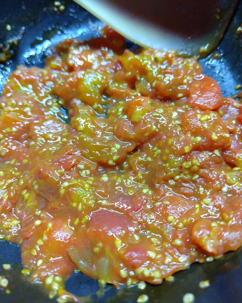 昨日は皮付きのまま煮たのですが、今日は皮を剥いて煮ました🍅🍅🍅🤗