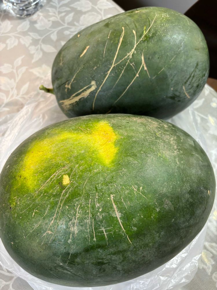 スイカ、見た目じゃないのね🤭 それにしてもいくつ採れたのか2つも凄いですね😍