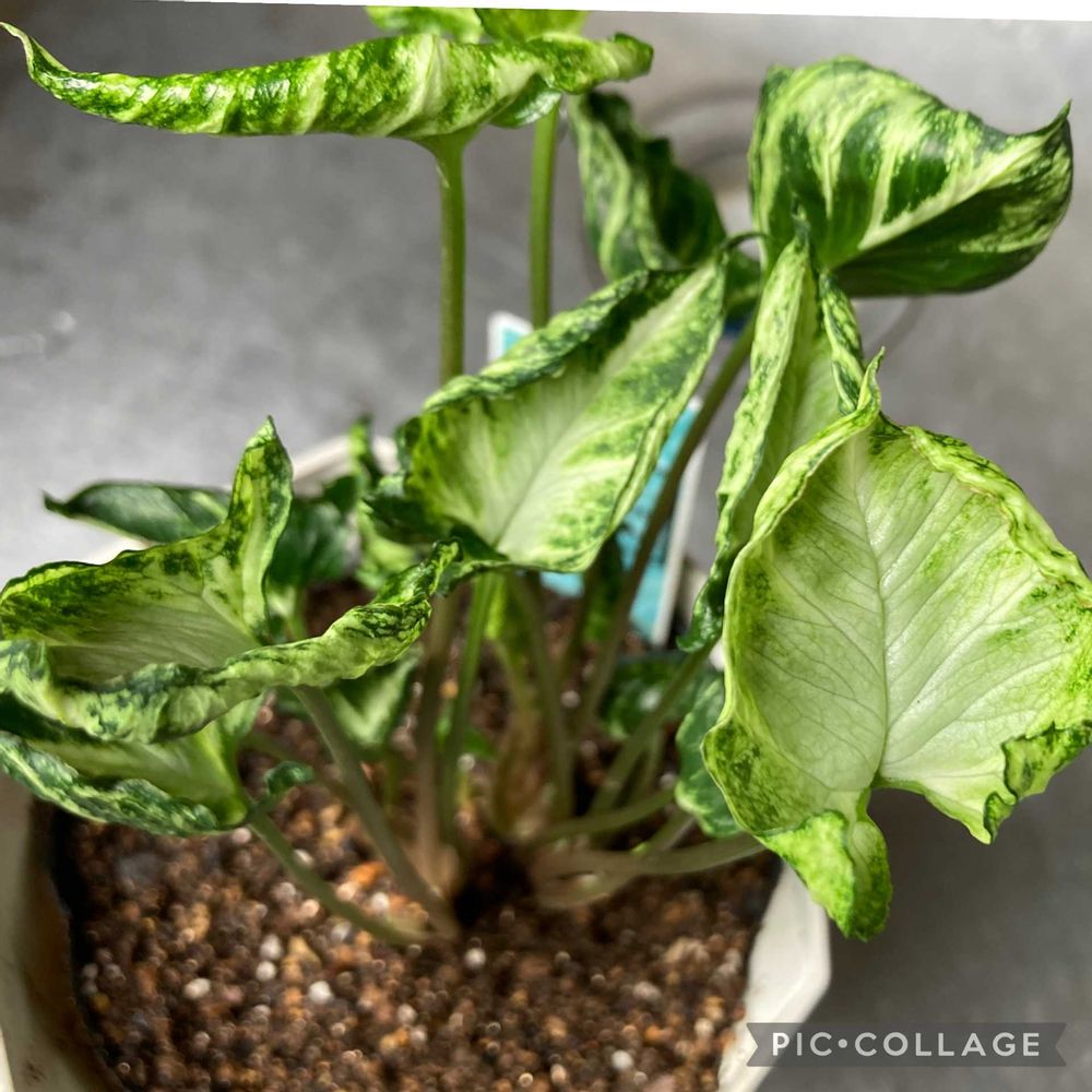 葉っぱの縁はクシュクシュく➡️ 羅紗(ラシャ)葉と言われる縮れた葉に白い中斑タイプ、、だそうです