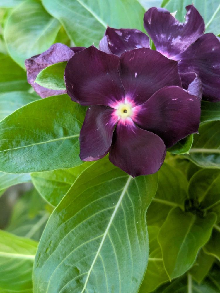 小さな庭,ニチニチソウ 花紫,サルスベリ(白)の投稿画像