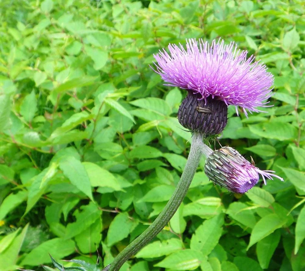 頭花は紅紫色で直径4〜5cmあり、枝先に上向きにつく。